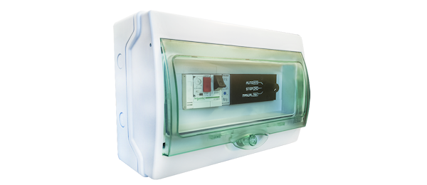Constituído por disjuntor motor e placa de controlo, permite a ativação de turbinas trifásicas (400VAC) e turbinas monofásicas (230VAC).